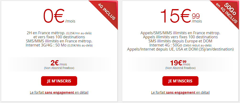 Désormais, ces mêmes forfaits se sont enrichis. Le forfait à 2 € par mois comprend 2h d’appels en France métropolitaine et vers les fixes de 100 destinations, ainsi que les SMS/MMS illimités en France métropolitaine et 50 Mo de data en 4G.
