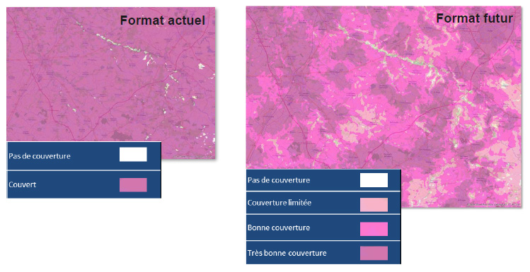 Pour mieux coller au ressenti des utilisateurs l’ARCEP a souhaité, en lien avec le gouvernement, faire évoluer les obligations des opérateurs. Ceux devront publier des cartes de couverture qui différencieront les zones de très bonne couverture, de bonne couverture et de couverture limitée pour les services de voix et de SMS.
