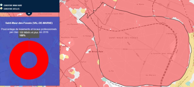Grâce à la première carte on peut voir que la ville de Saint-Maur-des-Fossés est entièrement couverte par le très haut débit.