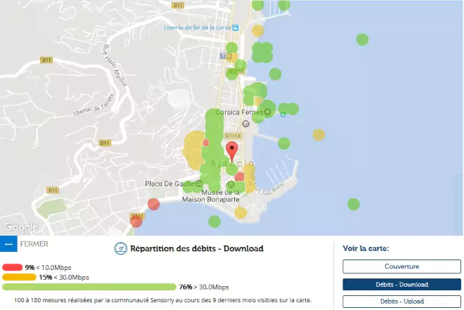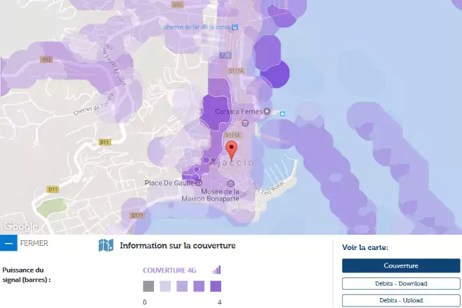 Avec les données de notre partenaire Sensorly, Univers Freebox vous propose un focus sur Ajaccio, 74ème ville de France par sa population et vous fait découvrir la carte de la couverture du réseau 4G et des débits.