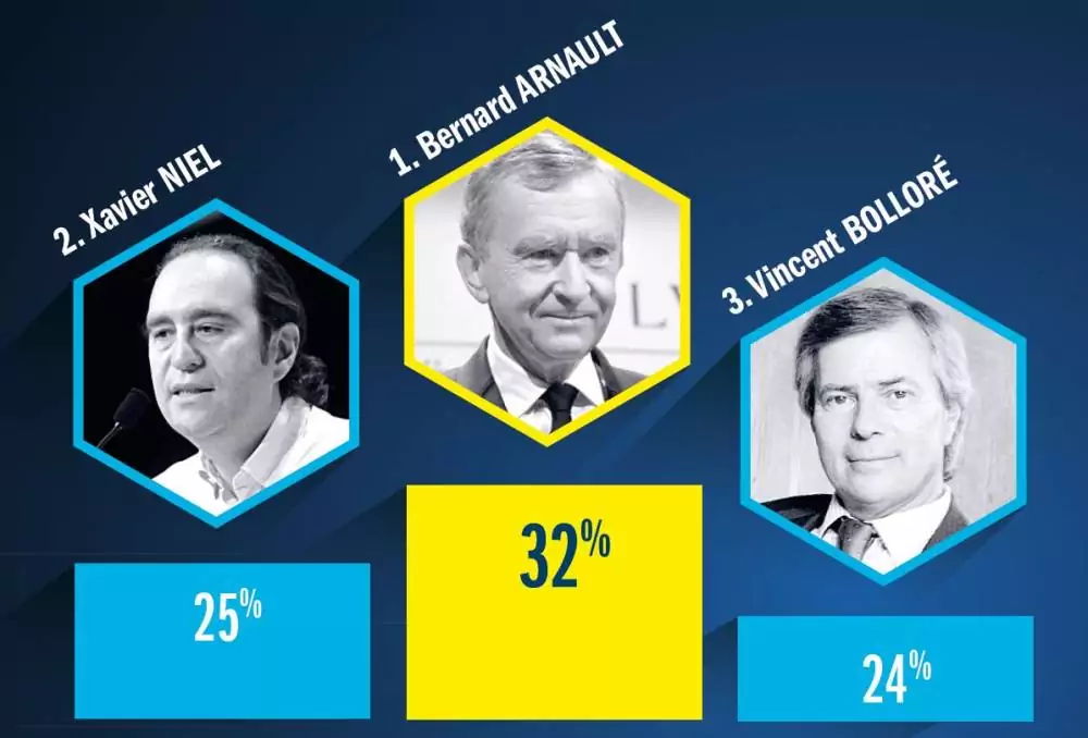 Cette enquête a été réalisé par BVA, par Internet, le 15 décembre dernier, sur un échantillon de 1.227 personnes de 18 ans et plus. Et, à la question, quel est selon vous le plus grand entrepreneur en France, les Français plébiscitent Bernard Arnault (LVMH, propriétaire du quotidien Les Echos) à 36 %, devant Michel Edouard Leclerc et Serge Dassault.
