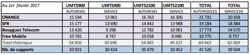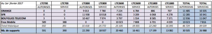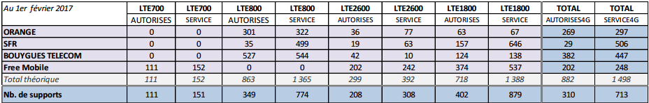 Le bilan des sites 4G mis en service en métropole s’établit comme suit par l’ANFR :
