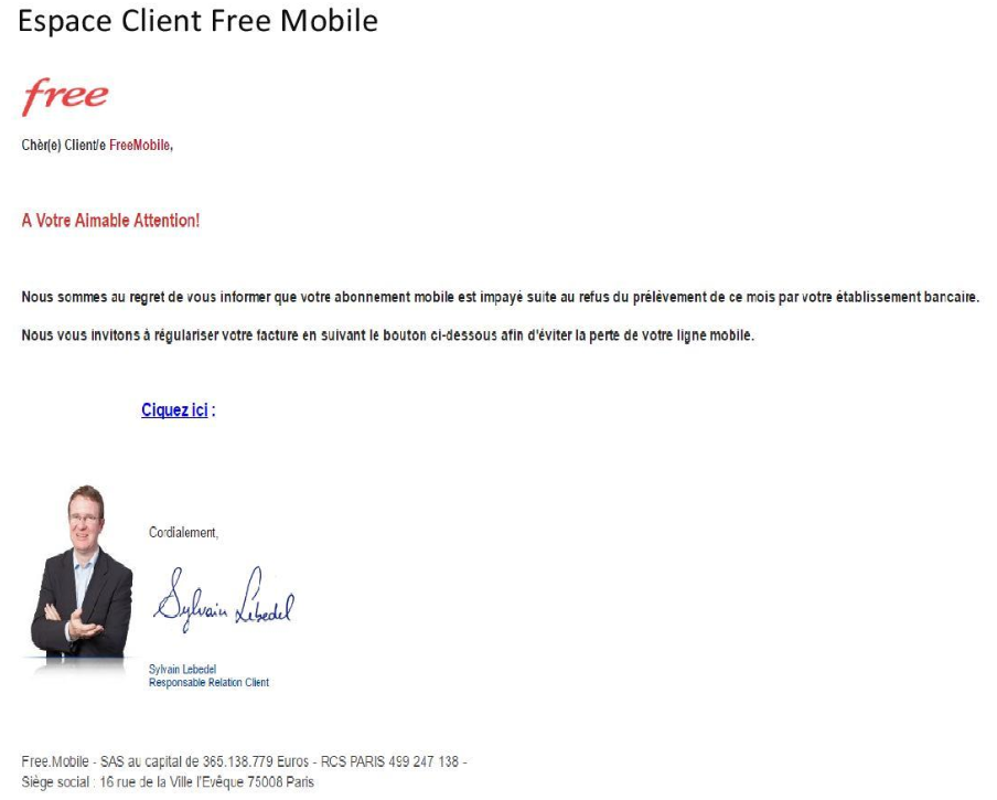 Un nouveau phishing visant les abonnés Free Mobile affiche la photo du responsable client pour rassurer ses proies