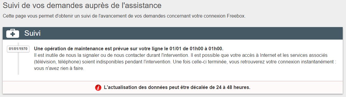 @freebox @plusinternet @assistance_free Sérieux, Free m’indique qu’une opération de maintenance est prévue le 01/01/1970 ? pic.twitter.com/nDcV1Exbnr