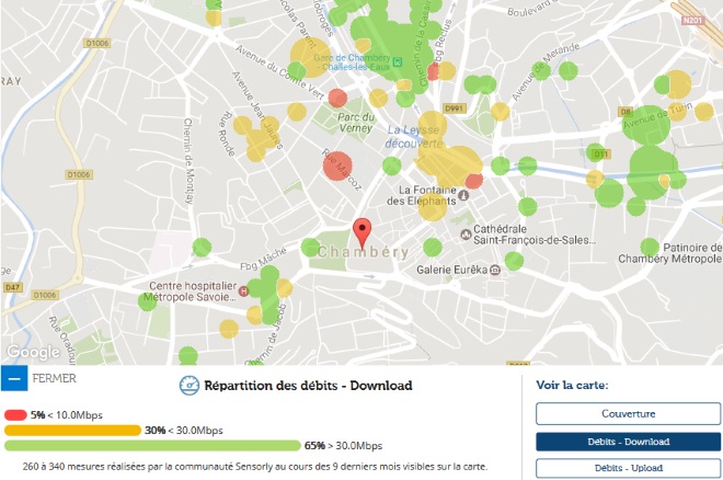 Avec les données de notre partenaire Sensorly, Univers Freebox vous propose un focus sur Chambéry, 91ème ville de France par sa population et vous fait découvrir la carte de la couverture du réseau 4G et des débits.