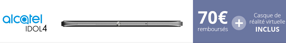 Pour l’achat de l’Alcatel Idol 4 , 70€ sont remboursés. Il s’agit d’une prolongation du 19 Février au 31 Mars