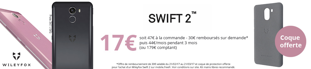 Pour l’achat d’un Wileyfox Swift 2, 30€ sont remboursés su 21 février au 21 mars