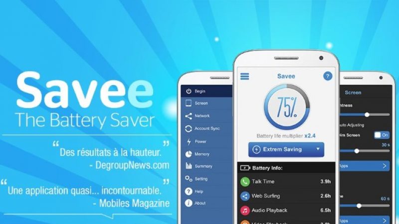 Savee est une application qui permet d’améliorer l’autonomie de votre androphone . Elle vient d’annoncer qu’elle était désormais gratuite et vous pouvez la télécharger sur le Google Play Store. Le développeur français annonce jusqu’à 2 fois plus d’autonomie en pratique. Univers Freebox a testé durant plusieurs jour cette application pour savoir si elle tenait ses promesse.