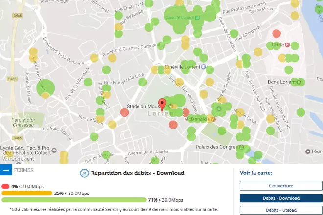 Avec les données de notre partenaire Sensorly, Univers Freebox vous propose un focus sur Lorient, 95ème ville de France par sa population et vous fait découvrir la carte de la couverture du réseau 4G et des débits.