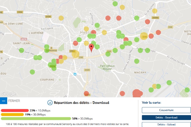 Avec les données de notre partenaire Sensorly, Univers Freebox vous propose un focus sur Hyères, 97ème ville de France par sa population et vous fait découvrir la carte de la couverture du réseau 4G et des débits.