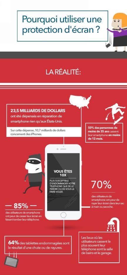 Qui n’a jamais cassé involontaire son smartphone ? La moitié des jeunes de moins de 35 ans, casse par exemple leur smartphone en moins de 12 mois. C’est l’une des informations que montre l’étude réalisée aux Etats Unis par InvisibleShield, un leader mondial de protections d’écran. Nous vous proposons de découvrir les résultats en infographie :