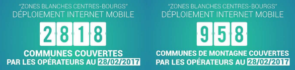 La Fédération Francaise des Télécoms publie aujourd’hui les nouveaux chiffres nationaux de la couverture des zones-blanches centres-bourgs. Au 28 février 2017, ce sont déjà 2818 communes du programme « Zones Blanches – centres-bourgs » (parmi lesquelles 958 communes de montagne) qui bénéficient de l’internet mobile de manière mutualisée par au moins trois opérateurs dont 1064 communes couvertes durant l’année 2016. Selon un rythme de déploiement qui s’accélère, 764 nouvelles communes du programme « ZonesBlanches centres-bourg » disposeront de l’internet mobile d’ici juillet 2017 dans les mêmes conditions, sous réserve pour certaines de la mise à disposition de l’infrastructure par la collectivité.