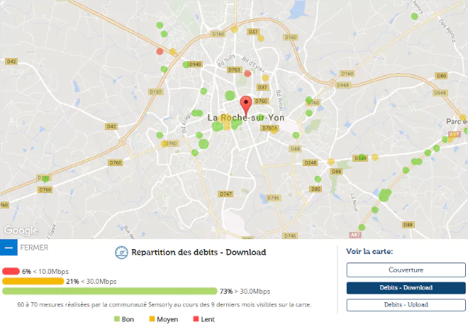 Avec les données de notre partenaire Sensorly, Univers Freebox vous propose un focus sur La Roche-Sur-Yon, 113ème ville de France par sa population et vous fait découvrir la carte de la couverture du réseau 4G et des débits.