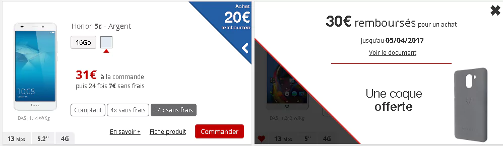 Lorsqu’une promotion, une offre de remboursement ou lorsqu’un accessoire est offert, il suffit désormais de déplier l’onglet en haut à droite, afin d’avoir davantage de précision.