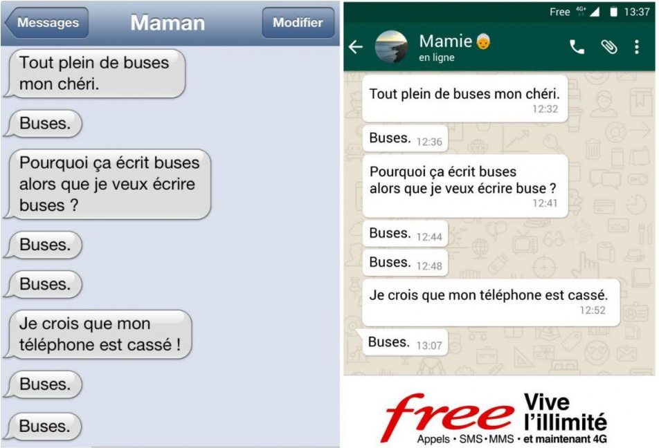 En effet, comme le rapporte Arrêt sur Images, une des 8 affiches de la nouvelle campagne de Free Mobile créée en collaboration avec l’agence DDB Paris, serait nul autre qu’un copié-collé d’une page du livre « Avec maman », d’Alban Orsini, paru en 2014 aux éditions Chiflet & Cie, premier roman sous forme de textos, retraçant l’histoire d’un fils et sa mère.
