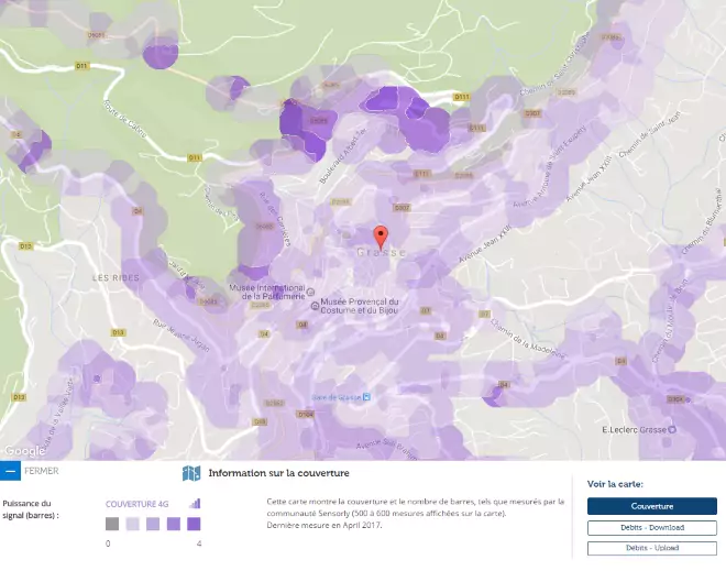 Avec les données de notre partenaire Sensorly, Univers Freebox vous propose un focus sur Grasse, 122ème ville de France par sa population et vous fait découvrir la carte de la couverture du réseau 4G et des débits.