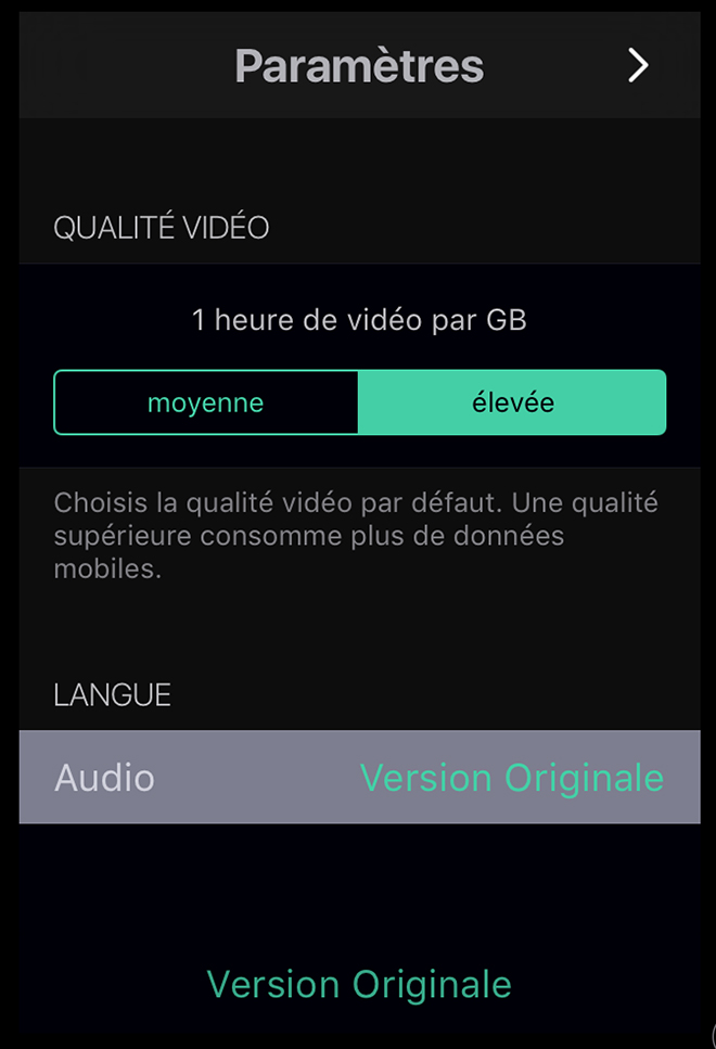 Coté paramètres, la plate-forme joint l’utile à l’agréable, deux types de qualité vidéo sont ainsi possibles, « moyenne » et « élevée », utile lorsque l’on sait qu’une qualité supérieure consomme plus de données mobiles. Le choix du langage et des sous-titres est aussi bien ficelé. Trois langues en plus de la version originale sont disponibles à savoir, l’anglais, le français et l’espagnol. S’agissant des sous-titres, les choix sont plus nombreux et paramétrables par défaut ou à tout moment en pleine lecture, on retrouve ainsi le français, l’anglais, l’arabe, le portugais, l’italien, l’espagnol et l’allemand, de quoi toucher un public international comme annoncé. Les langues asiatiques devraient se joindre à la liste en 2018.