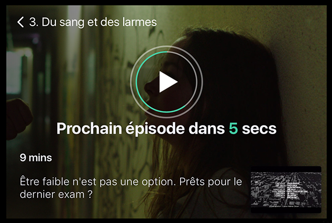 D’après nos premières constatations, aucune bannière publicitaire ne vient pour le moment interférer et aucune limitation de visionnage ne semble mise en place dans cette version gratuite. Il faudra certainement attendre l’arrivée de la version payante dans quelques semaines pour voir le libre accès bridé à deux épisodes par jour et la publicité vous embêter. Enfin le chargement des épisodes (uniquement en streaming) semble rapide, cela dépend toutefois de la qualité du réseau rencontré. Pour une lecture plus confortable, les épisodes s’enchaînent les uns après les autres via un écran de chargement sur lequel est inscrit le résumé de l’épisode à suivre. Ne reste désormais plus qu’à juger de la qualité de la réalisation de ces productions inédites en attendant l’arrivée du « freemium » et certainement de nouvelles fonctionnalités.