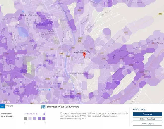 Avec les données de notre partenaire Sensorly, Univers Freebox vous propose un focus sur Belfort, 125ème ville de France par sa population et vous fait découvrir la carte de la couverture du réseau 4G et des débits.