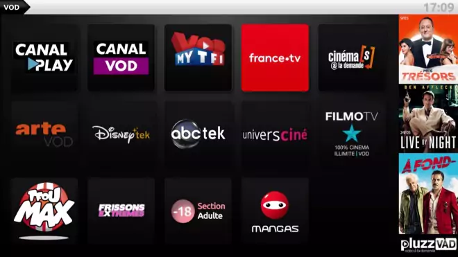 La section VàD est quant à elle composée de plusieurs rubriques : nouveautés cinéma, série et fiction, documentaire, spectacle ou encore jeunesse.
