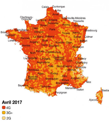 L’opérateur historique annonce qu’en matière de couverture, il dispose « de plus de 15 955 antennes 4G réparties dans près de 3700 villes en France. A fin Février 2017, ce sont plus de 11,9 millions de clients (dont plus de 9,5 millions de clients Grand Public) qui bénéficient de la 4G chez Orange. » Son ambition à l’horizon 2018 est d’atteindre 98% de couverture.