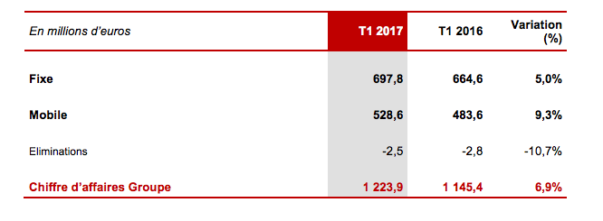 Si Iliad peut se targuer de continuer sur sa lancée en terme de performances commerciales, l’en attestent les résultats trimestriels de Free publiés ce matin sur le mobile et le fixe, le groupe peut donc également se féliciter de son chiffre d’affaires, en hausse de 6,9% au premier trimestre 2017 et qui s’établit à 1 224 millions d’euros.