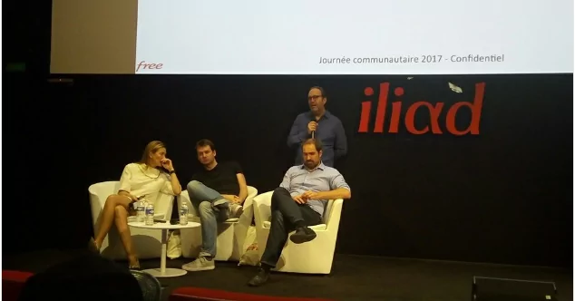 Après le petit déjeuner, tous les participants se sont installés dans l’amphithéâtre du siège d’Iliad. La conférence est lancée ! C’est Angélique Gérard, la directrice de la relation abonné, qui ouvre avec enthousiasme cette nouvelle convention des communautés de Free. Et c’est Mathieu qui est aux manettes pour organisé cette journée. Mathieu avec qui vous pouvez échanger sur Twitter, puisqu’il est aussi le boss des community managers de Free.