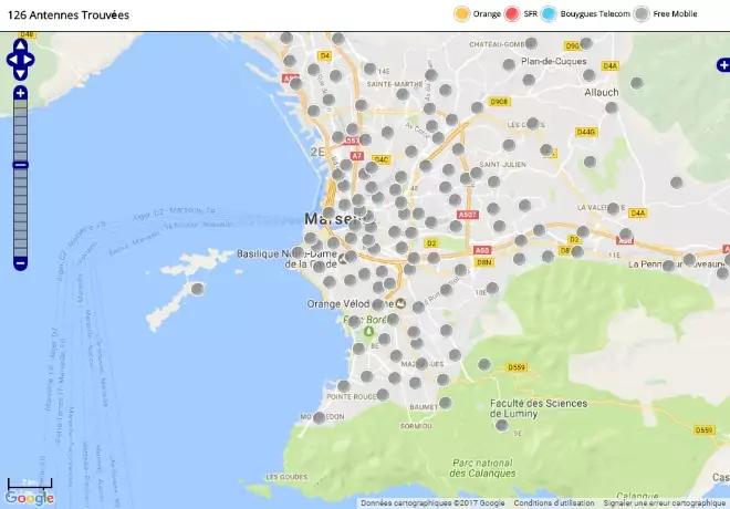 Free a également implanté 117 antennes mobiles 3G dans la ville de Marseille (antennes non-actives incluses)
