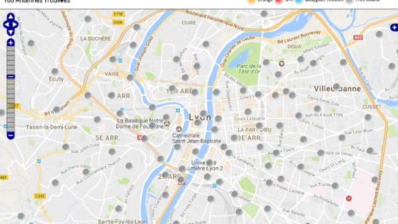 Découvrez la répartition des antennes mobiles Free 3G/4G sur Lyon