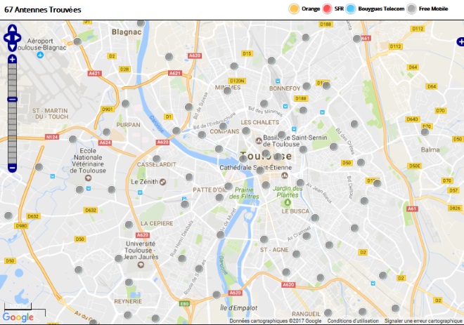 Découvrez la répartition des antennes Free Mobile 3G/4G sur Toulouse