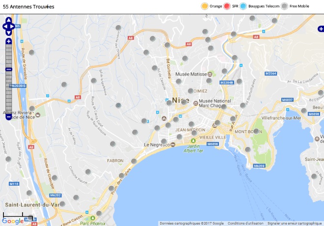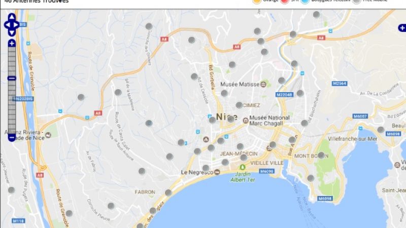 Découvrez la répartition des antennes mobiles Free 3G/4G sur Nice