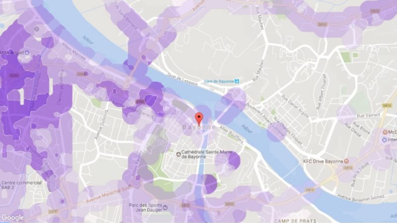 Avec les données de notre partenaire Sensorly, Univers Freebox vous propose un focus sur Bayonne, 135ème ville de France par sa population et vous fait découvrir la carte de la couverture du réseau 4G et des débits.