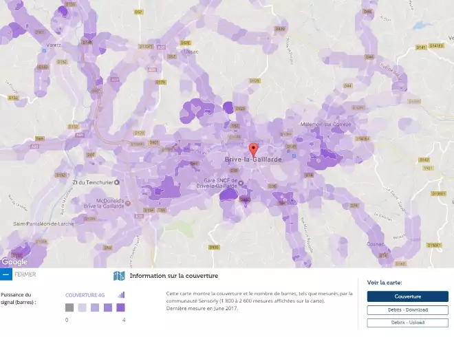 Avec les données de notre partenaire Sensorly, Univers Freebox vous propose un focus sur Brive-la-Gaillarde, 138ème ville de France par sa population et vous fait découvrir la carte de la couverture du réseau 4G et des débits.