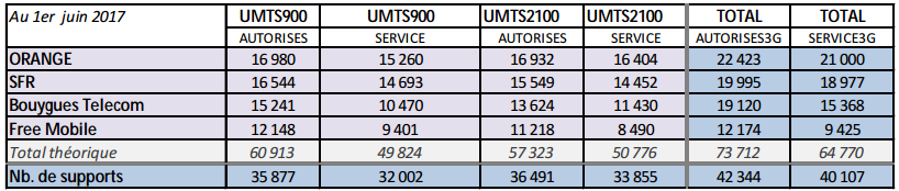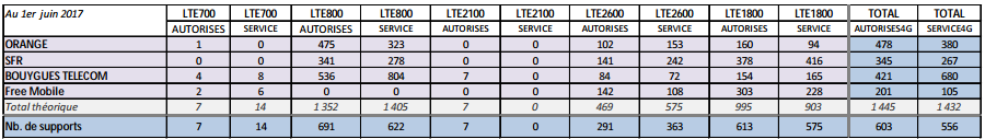 Le bilan des sites 4G mis en service en métropole s’établit comme suit par l’ANFR :