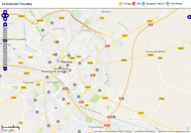 Free a également implanté 29 antennes mobiles 3G dans la ville de Reims.