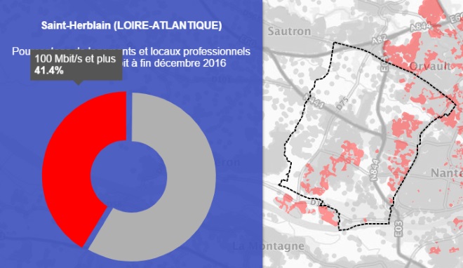 Grâce à la première carte on peut voir que la ville de Saint-Herblain est couverte à 41.7% par le très haut débit.