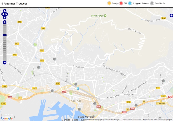 Découvrez la répartition des antennes mobiles Free 3G/4G sur Toulon