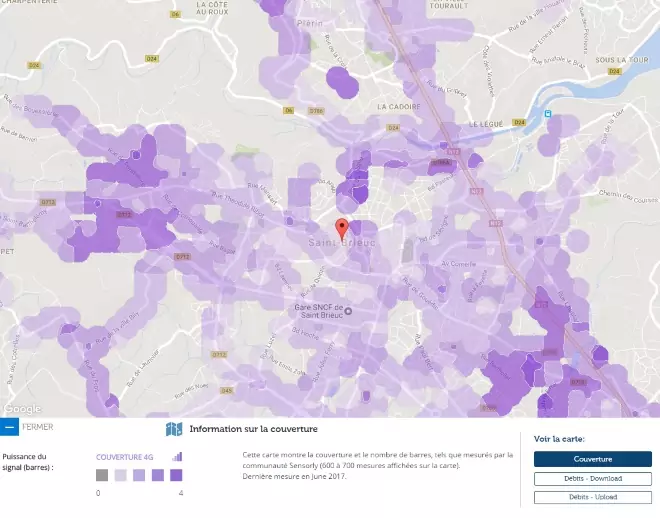 Avec les données de notre partenaire Sensorly, Univers Freebox vous propose un focus sur Saint-Brieuc, 144ème ville de France par sa population et vous fait découvrir la carte de la couverture du réseau 4G et des débits.
