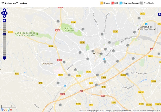 Découvrez la répartition des antennes mobiles Free 3G/4G sur Nîmes