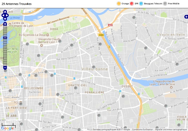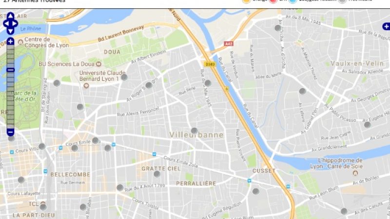 Découvrez la répartition des antennes mobiles Free 3G/4G sur Villeurbanne