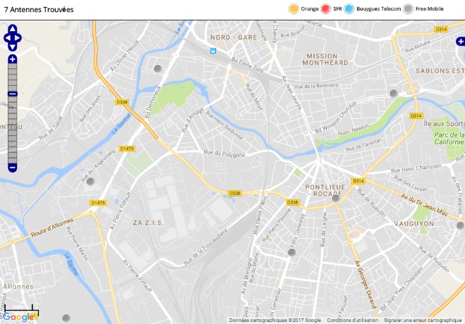 Découvrez la répartition des antennes mobiles Free 3G/4G sur Le Mans