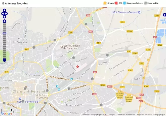 Découvrez la répartition des antennes mobiles Free 3G/4G sur Clermont-Ferrand