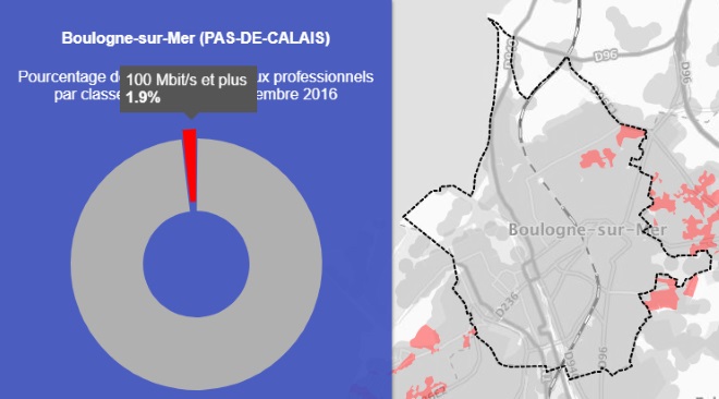 Grâce à la première carte on peut voir que la ville de Boulogne-sur-Mer est couverte à 24.5% par le très haut débit.