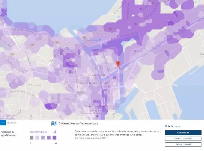 Avec les données de notre partenaire Sensorly, Univers Freebox vous propose un focus sur Sète, 157ème ville de France par sa population et vous fait découvrir la carte de la couverture du réseau 4G et des débits.