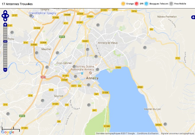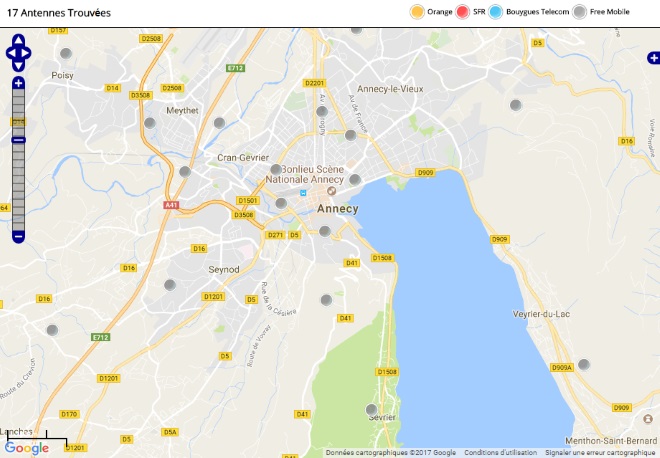 Découvrez la répartition des antennes mobiles Free 3G/4G sur Annecy