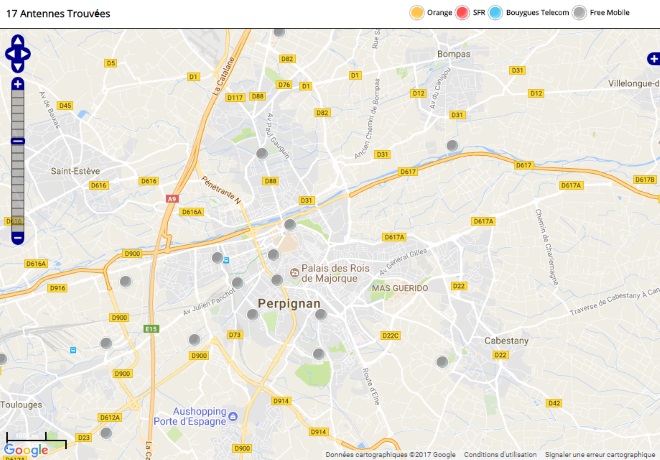 Découvrez la répartition des antennes mobiles Free 3G/4G sur Perpignan