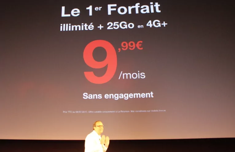 Clin d’oeil – Ce matin, à La Réunion, Xavier Niel, a dénoncé les tarifs des produits courants, pratiqués dans ce département d’outre mer. Si bien qu’il a annoncé, que pour la première fois, un tarif serait moins cher en outre mer que dans la métropole. Avec un forfait mobile illimité avec 25Go de data + 25Go en roaming il a tenu promesse.