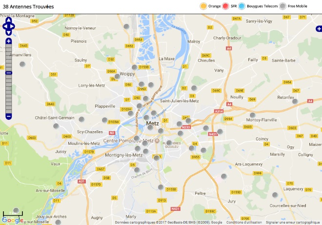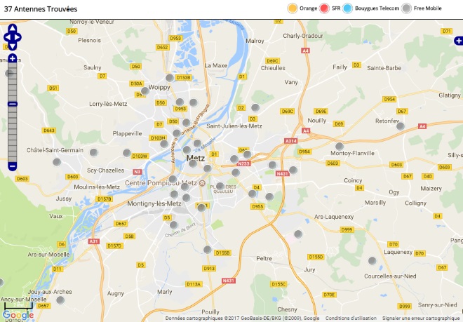 Découvrez la répartition des antennes mobiles Free 3G/4G sur Metz