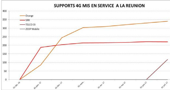 Malgré tout, Orange et SFR (SRR), qui ont commencé a déployer leurs réseaux 4G à La Réunion en décembre 2016, disposent d’un plus grand nombre de site que Free (Telco OI) : près de 350 pour Orange et 225 pour SFR.