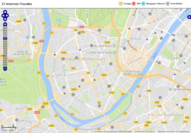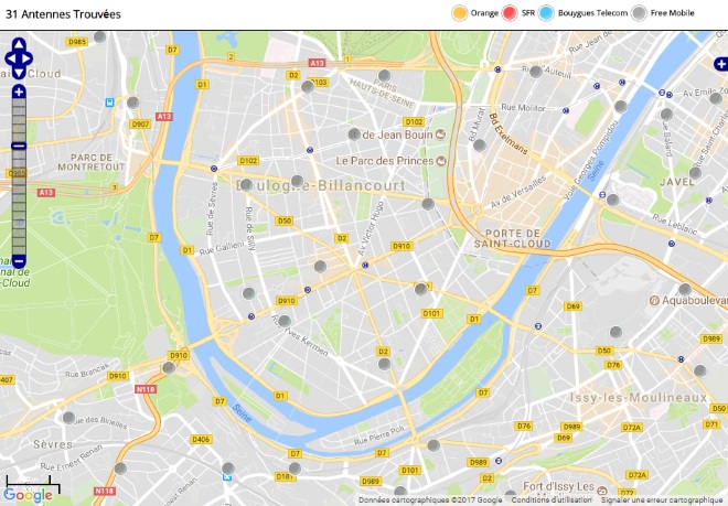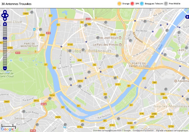 Découvrez la répartition des antennes mobiles Free 3G/4G sur Boulogne-Billancourt